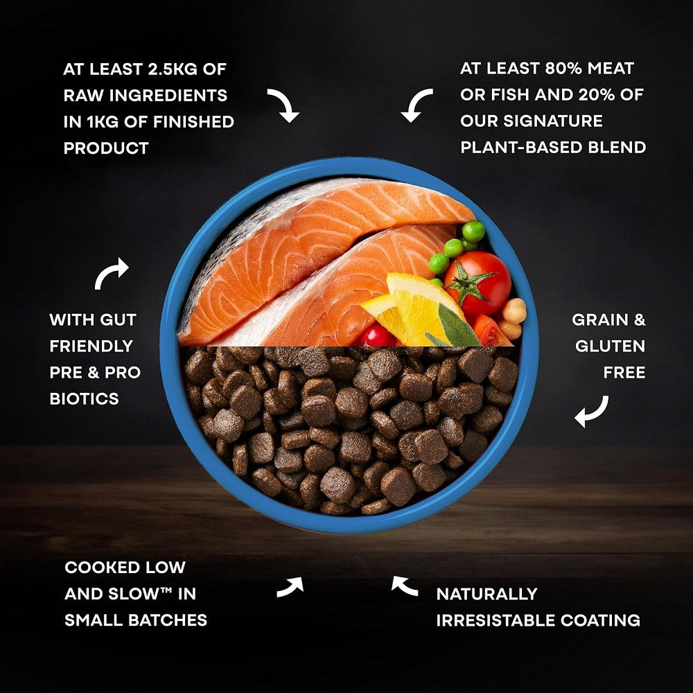 • 80/20 dry dog food combines 80% fresh fish with a 20% blend of Super-8 mix of fruit and veg.