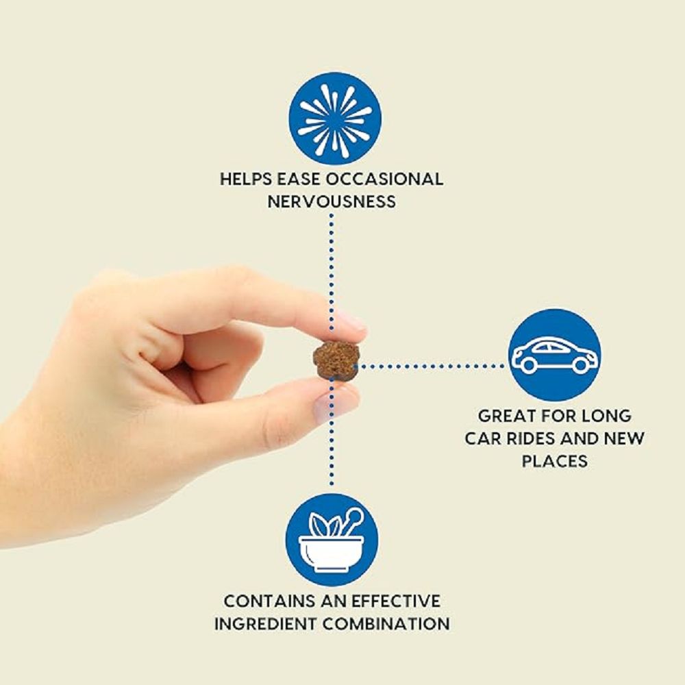 • Natural calming treats to help reduce anxiety during stressful scenarios in cats and dogs.