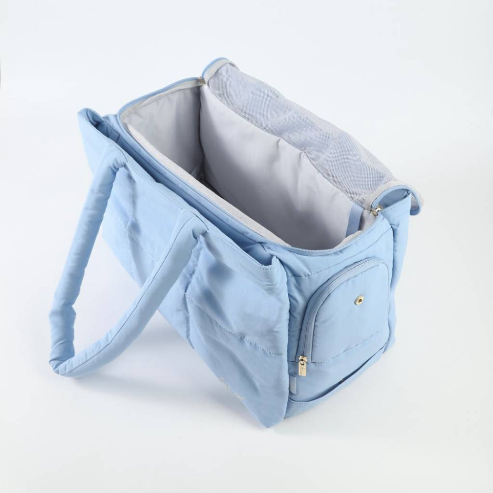 - Cloud inspired styling, quilted details, fluffy handles, and waterproof fabric make this carrier both fashionable and functional for commutes and vacations.