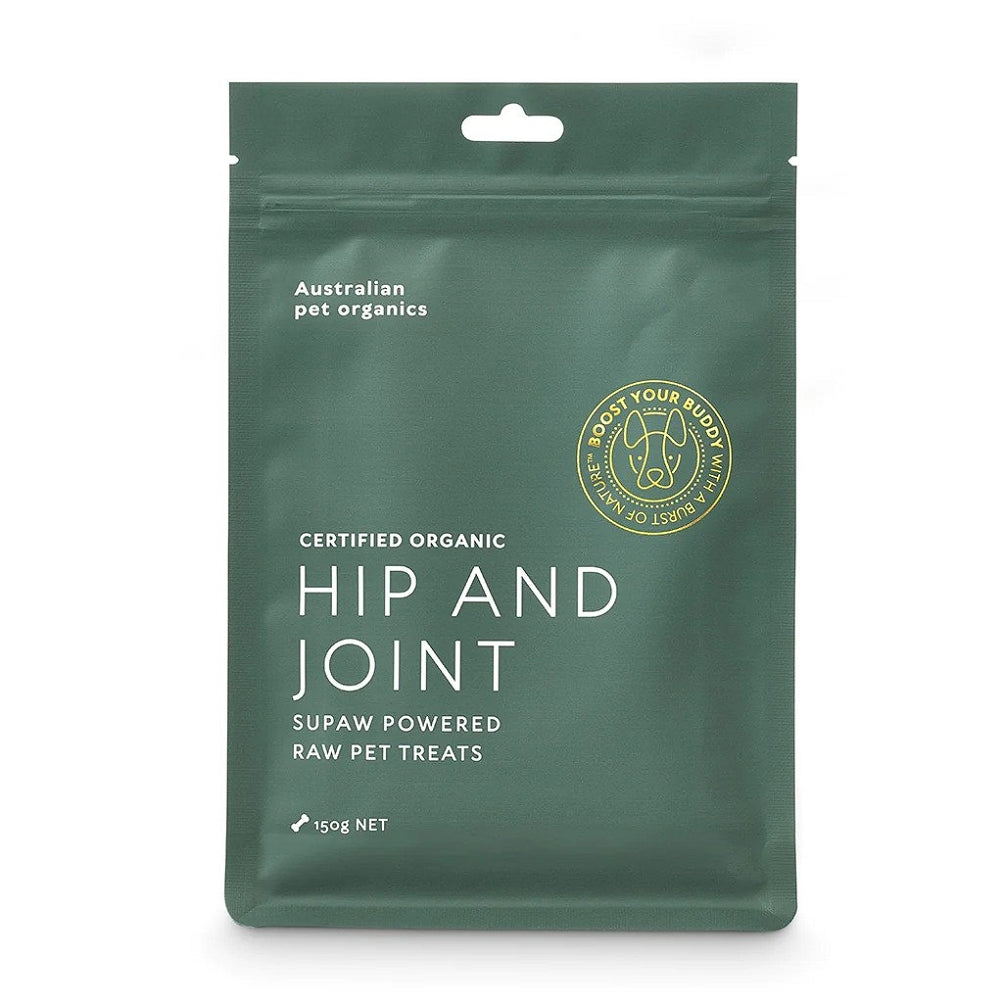 A natural treat containing a powerful combination of Rosehip and Turmeric powder together with our trademarked Supaw™ blend. Our Certified Organic Hip and Joint Treats help doggos with stiffness or inflammation or those prone to injury. They are a helpful recovery aid for active dogs, help with bone growth and mobility in younger dogs and ease stiffness, arthritis and other age-related joint pain in older dogs.