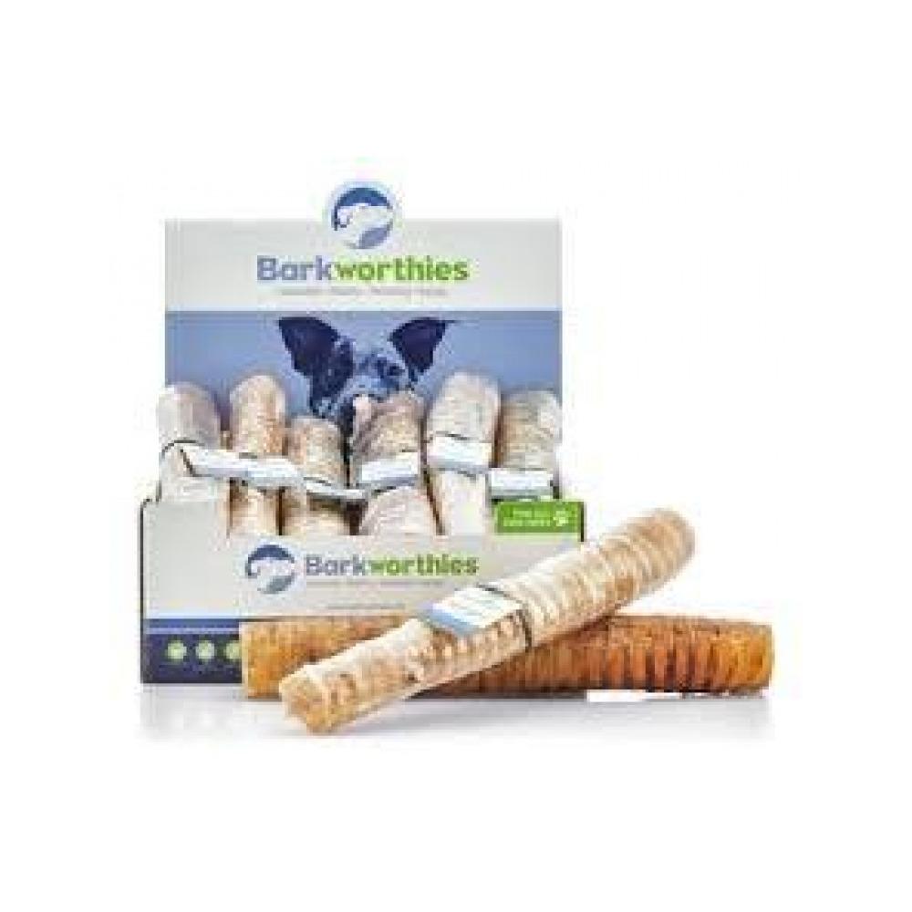 Barkworthies Beef Trachea are all-natural dog chews with fat trimmings left on, which makes them both enticing and delicious! A healthy, 100% digestible alternative to traditional rawhide, our trachea contain naturally occurring forms of glucosamine and chondroitin for mobility and flexibility. Barkworthies Beef Trachea also serve as a great dental chew by helping to remove food residue and built-up plaque.