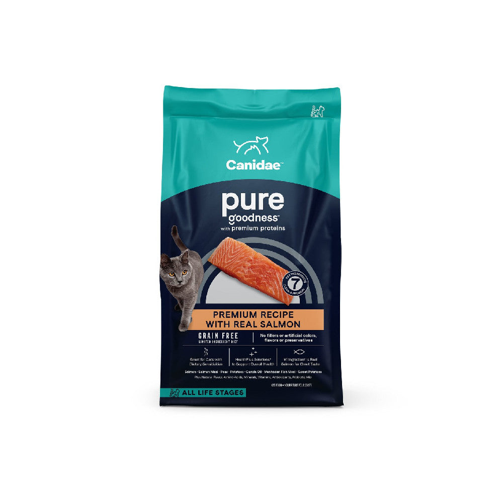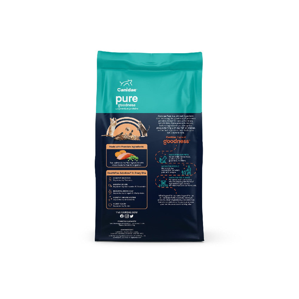 CANIDAE Grain Free PURE Sea Cat Dry Formula with Fresh Salmon uses simple recipes for sensitive cats. Choosing a grain free limited ingredient diet may help pets who experience food sensitivities. Less ingredients could mean less chance of sensitive reactions. Each limited ingredient recipe is made with 7 key ingredients that are easily recognizable, plus all the vitamins and minerals your cat needs.