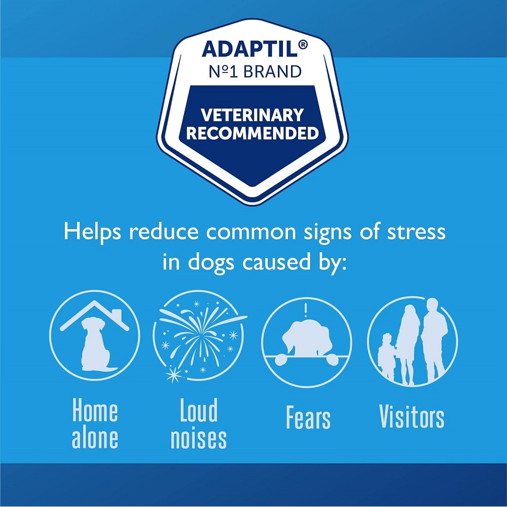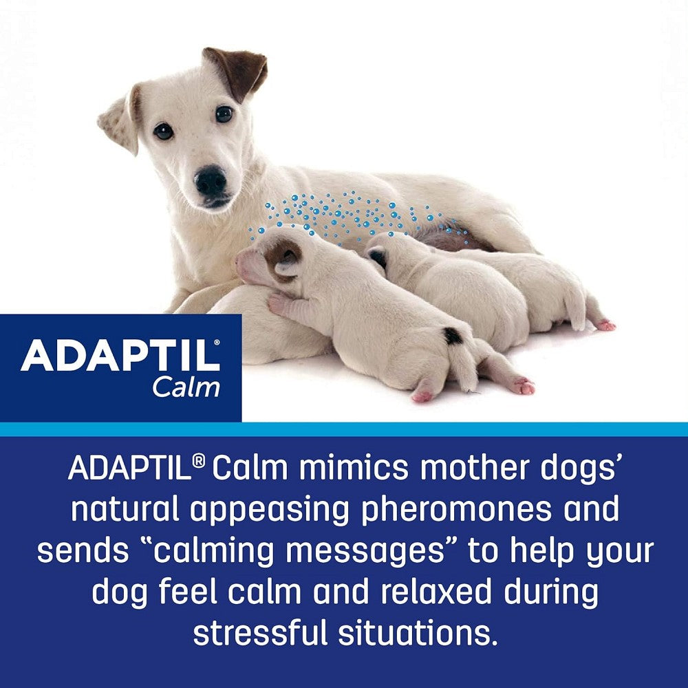 • ADAPTIL helps your dog feel calm and comfortable by mimicking a mother dog’s natural nursing pheromones