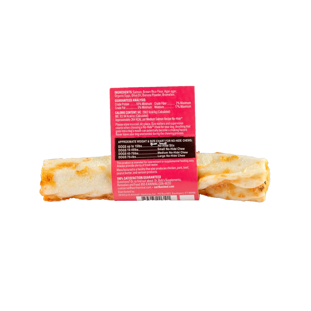 Earth Animal’s Chews are always made from wild caught salmon with no added chemicals. No-Hide Salmon Chews give new meaning to dog chews. Try the safer, healthier alternative today! Our 100% pure salmon chews are digestible.