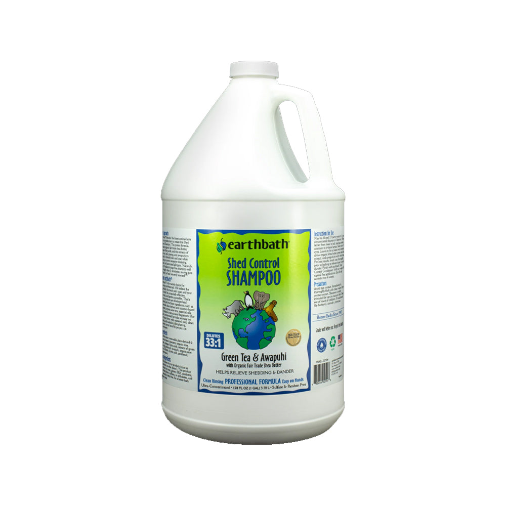 Earthbath blended the finest antioxidants and skin moisturizers found in nature to create this Shed Control Shampoo. This potent formula contains organic fair trade shea butter, essential green tea leaf extract, ginseng, omega-6 fatty acids, awapuhi and other natural humectants & emollients to nourish & detoxify skin and rejuvenate coats while controlling excessive shedding, dander and associated allergens. Naturally, this pH-balanced soap-free shampoo will thoroughly clean & deodorize, leaving pets brilliantly soft and heavenly scented.