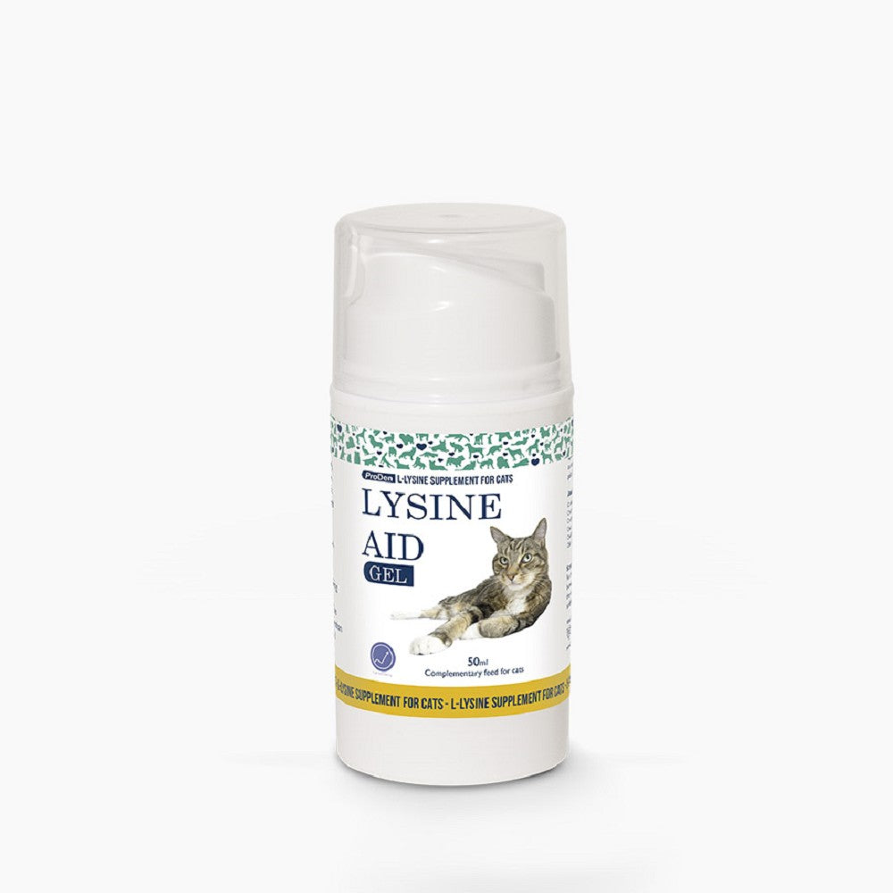 • Lysine Aid® is a food supplement for cats that helps to control the replication of the Feline Herpes Virus.