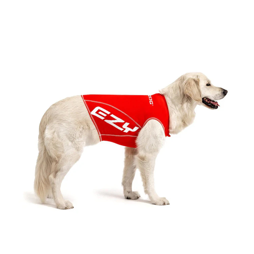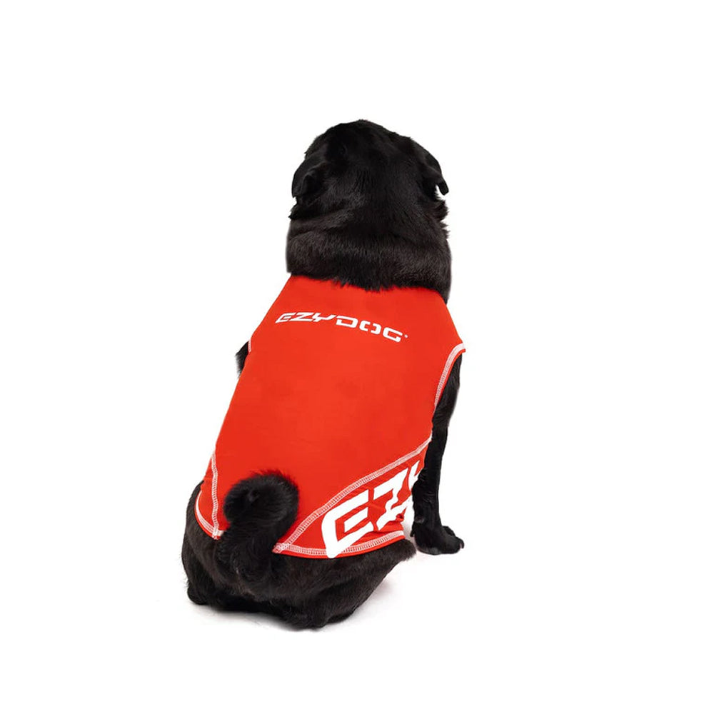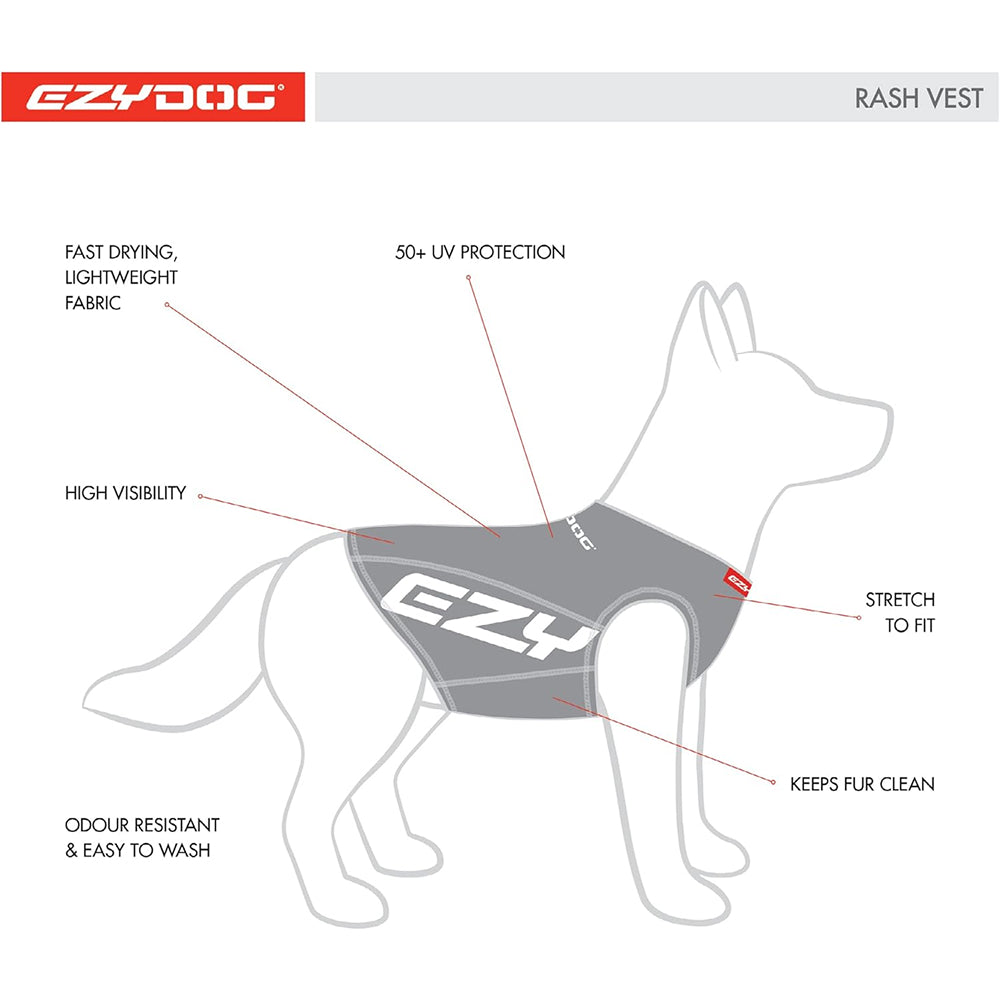 – Lightweight dog rash guard made from high-visibility stretch lycra.