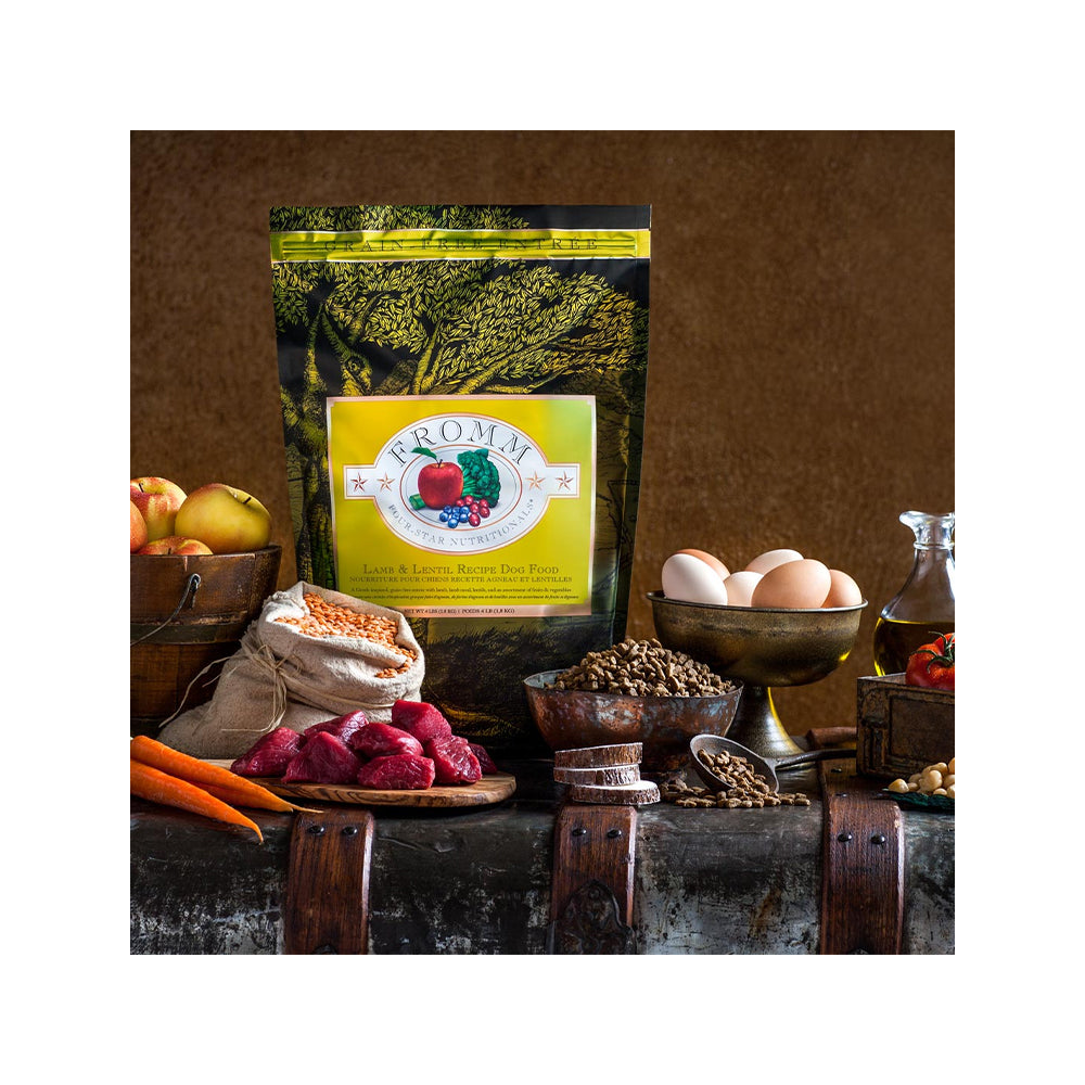 Fromm Four-Star Nutritionals Grain-Free Lamb & Lentil Dry Dog Food is a delectable grain-free blend of lamb and lentils combined with fresh fruits and vegetables. Created to give dogs a gourmet dining experience, this artisan recipe is prepared in small batches, ensuring consistency, quality, and superior taste in each and every bowl. It provides complete and balanced nutrition to dogs of all ages, and it can be alternated with other Fromm Four-Star recipes, offering a flavorful meal on its own or when mixed with canned food.