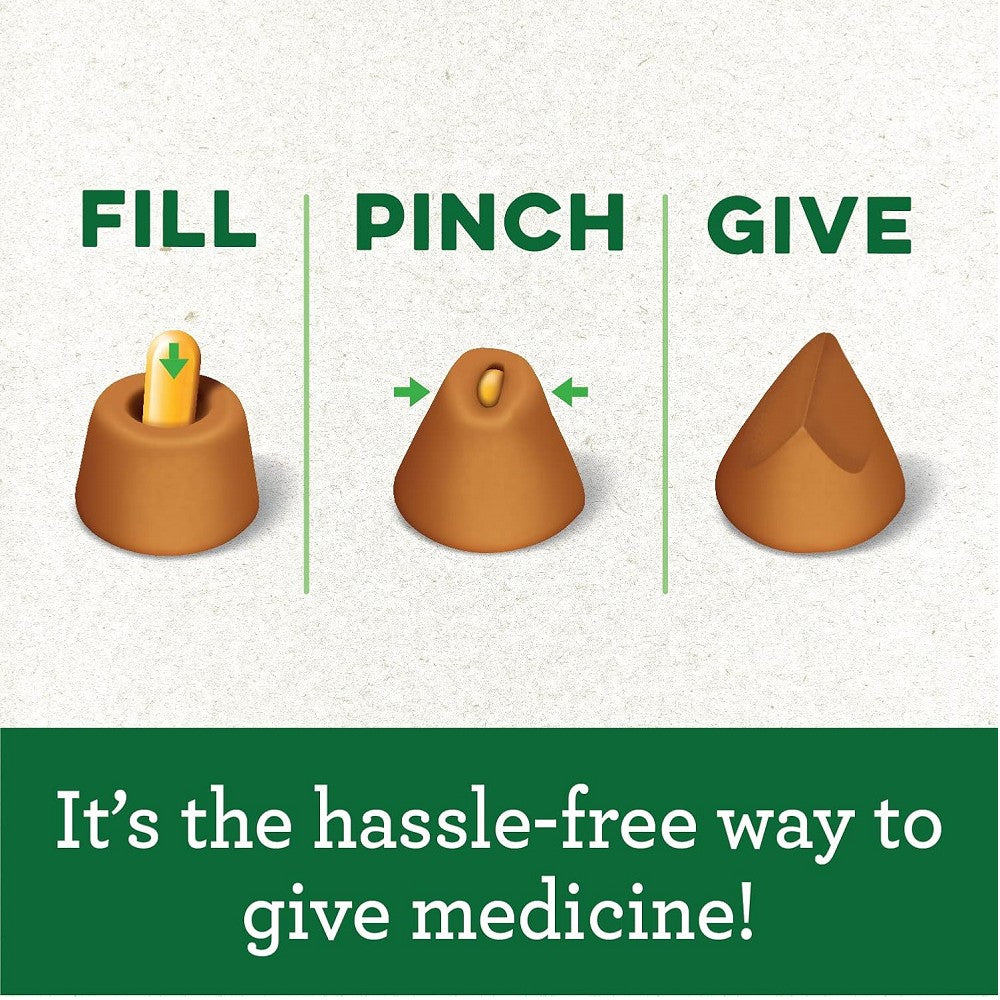 • Easy to use—simply place your cat’s medicine inside the pill pocket, pinch the pocket closed until the pill is hidden and give the treat to your cat.