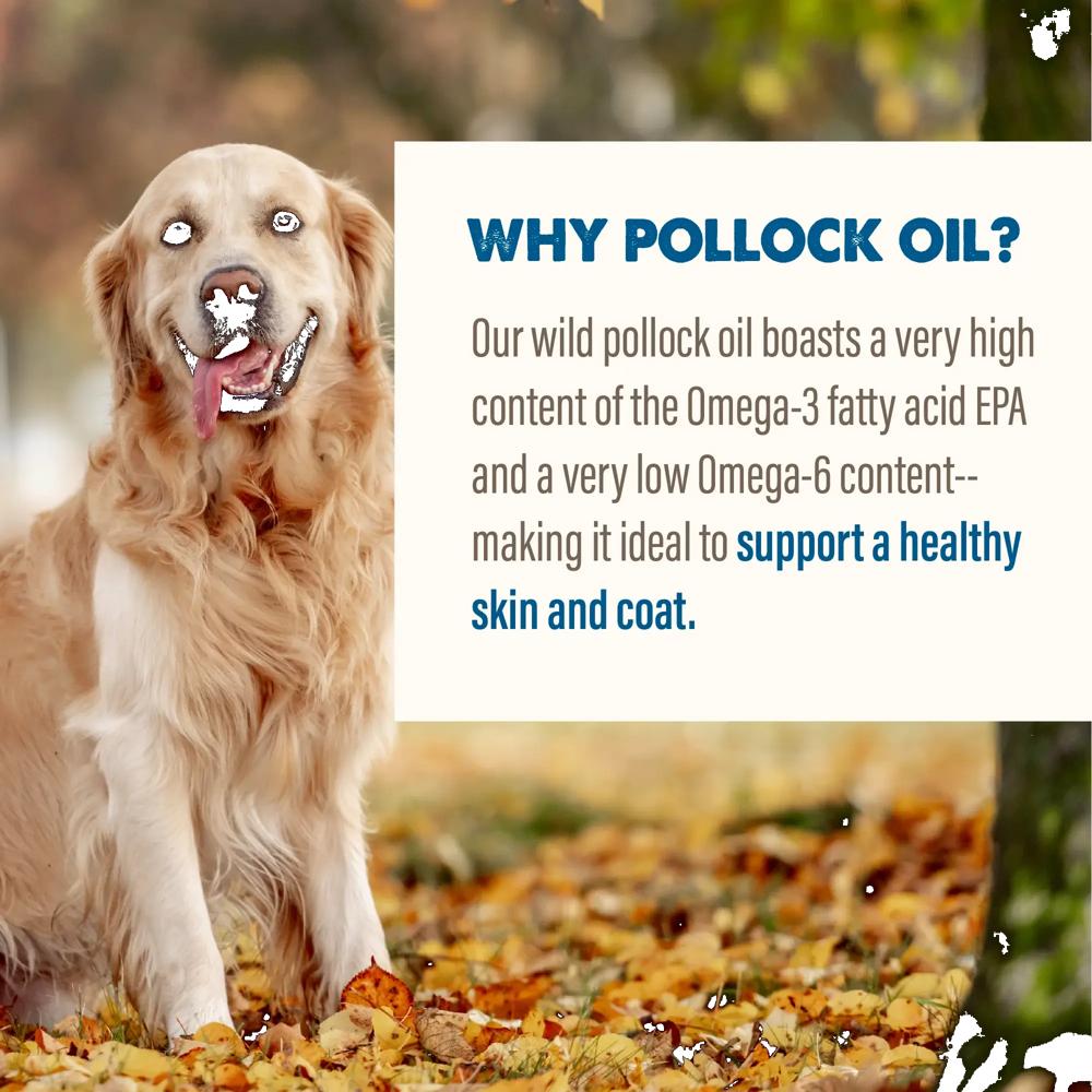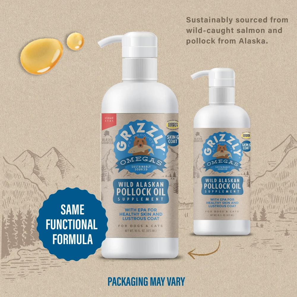 A natural boost for your dog’s skin, coat, and heart, Grizzly Pollock Oil is a clean, daily supplement rich in omega fatty acids—sourced from wild Alaskan pollock.