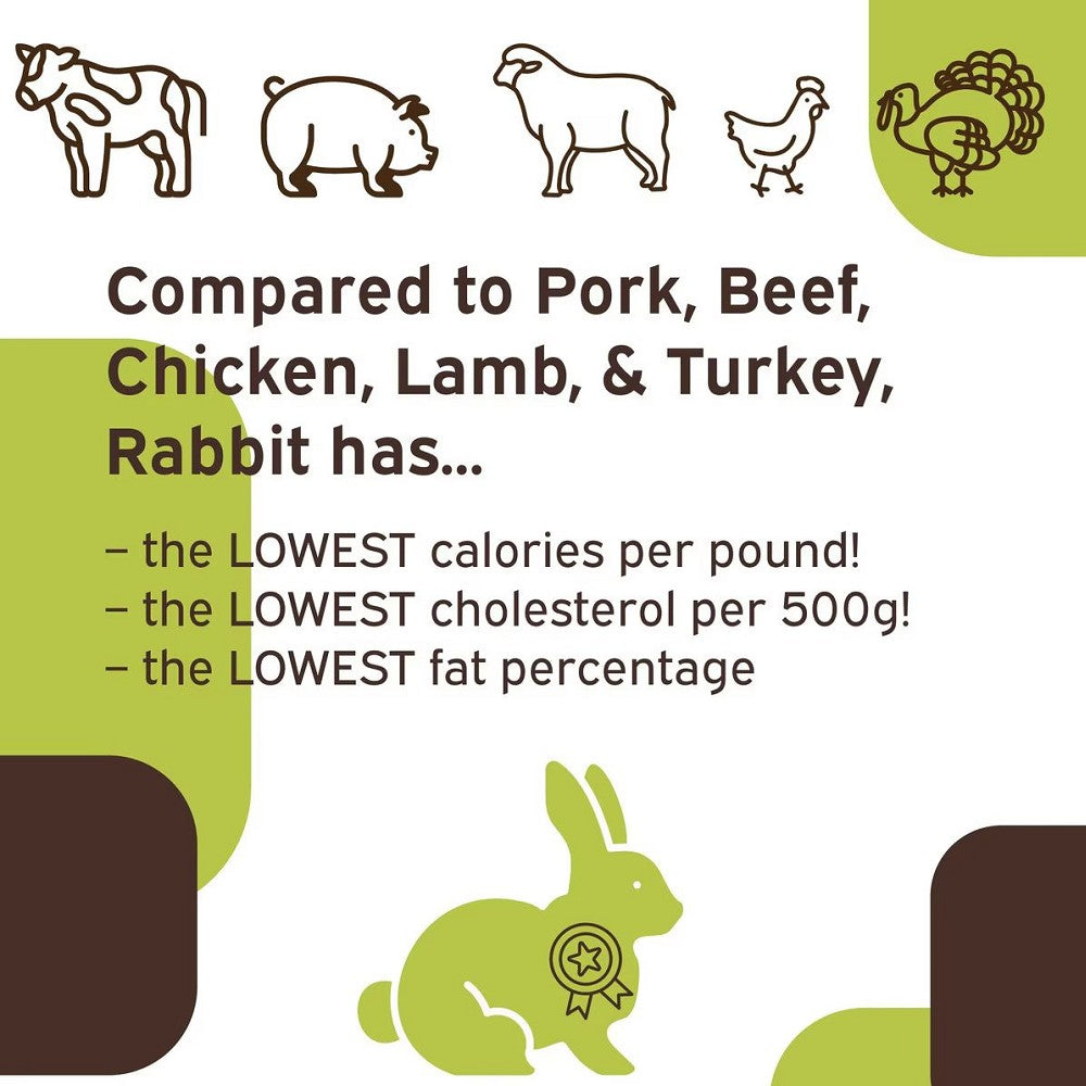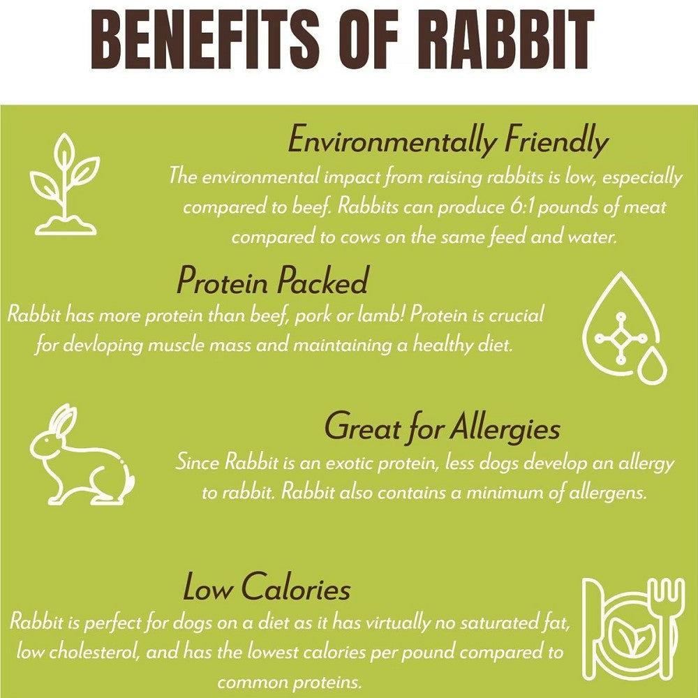 • Rabbit is naturally rich in protein and low in fat, calories, and cholesterol for a treat you and your dog can agree on.