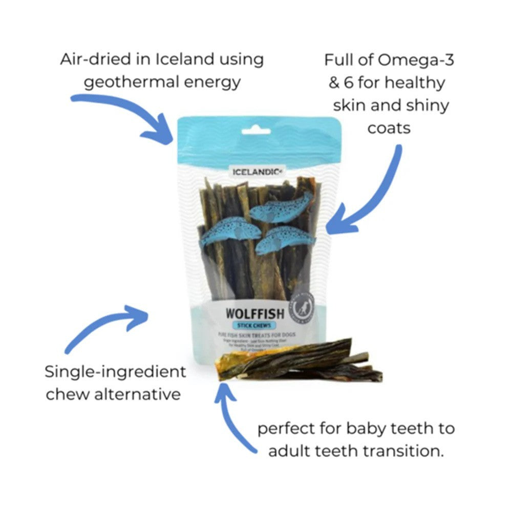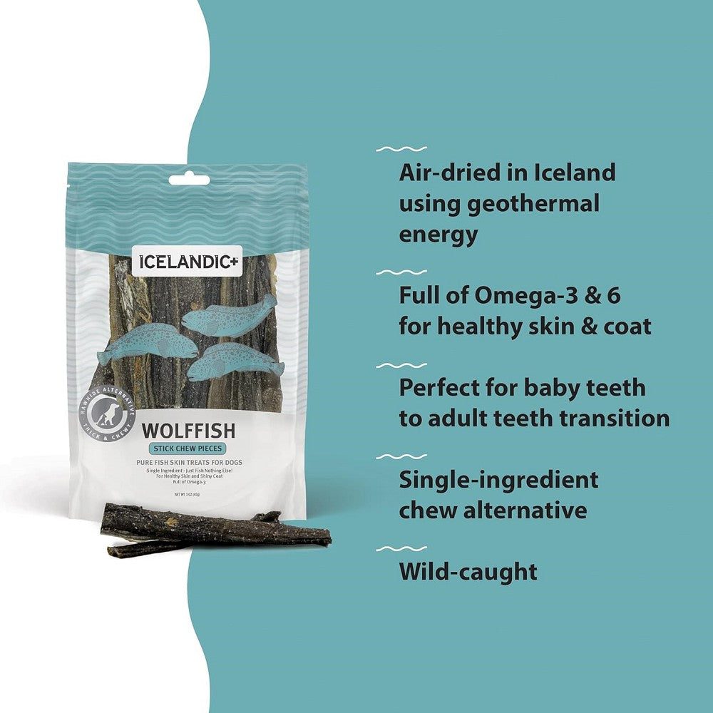 • 100% Pure Icelandic+ Wolffish Stick Chews.