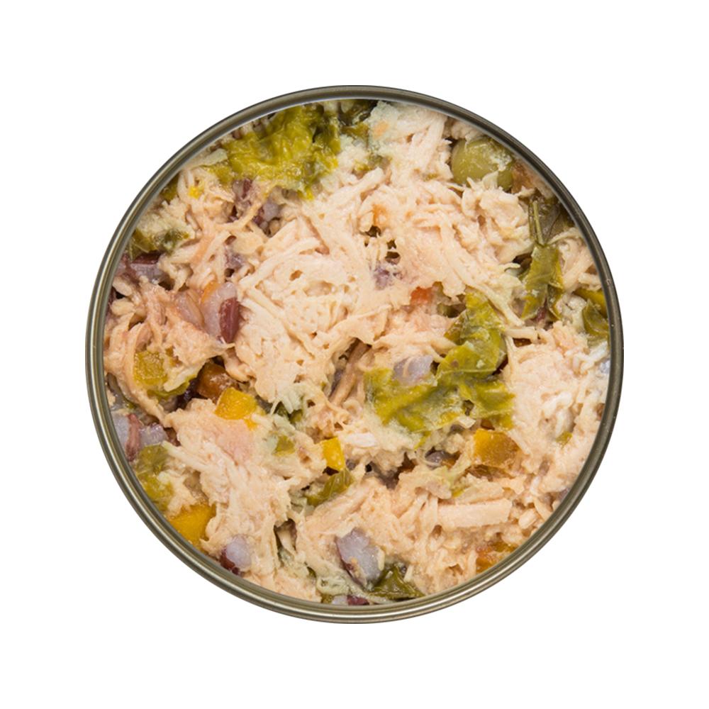 Chicken & Vegetables has flaky chunks of chicken meat and vegetables in water, ideal for cats and dogs that like a little liquid in their food.