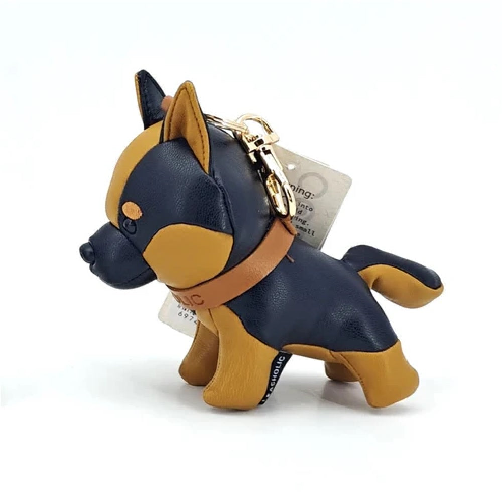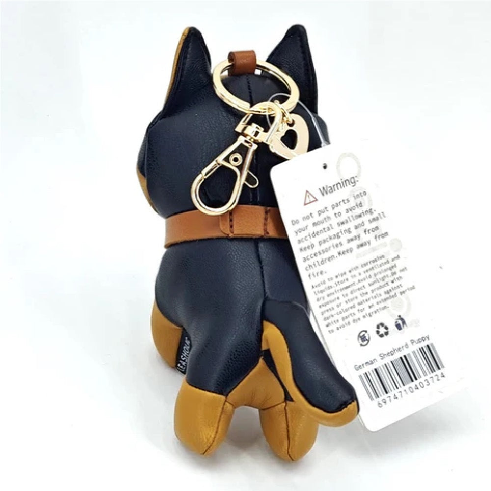 – Faux leather charm featuring cute German Shepherd design.