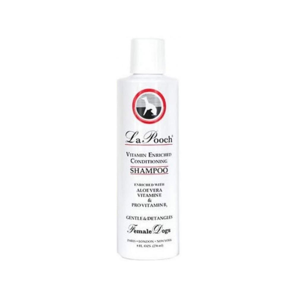 Replenish nutrient-starved coats with Pooch Vitamin Enriched Shampoo. Formulated with a blend of Pro-Vitamin B5, Aloe Vera, Vitamin E, and our opulent Les Pooch fragrances, this deep penetrating shampoo nourishes your dog’s coat from the hair’s root for healthy, silky-smooth, and shiny coats. It brings out the coat’s natural pigment and holds a nice, fresh scent for weeks. Rich and conditioning.
