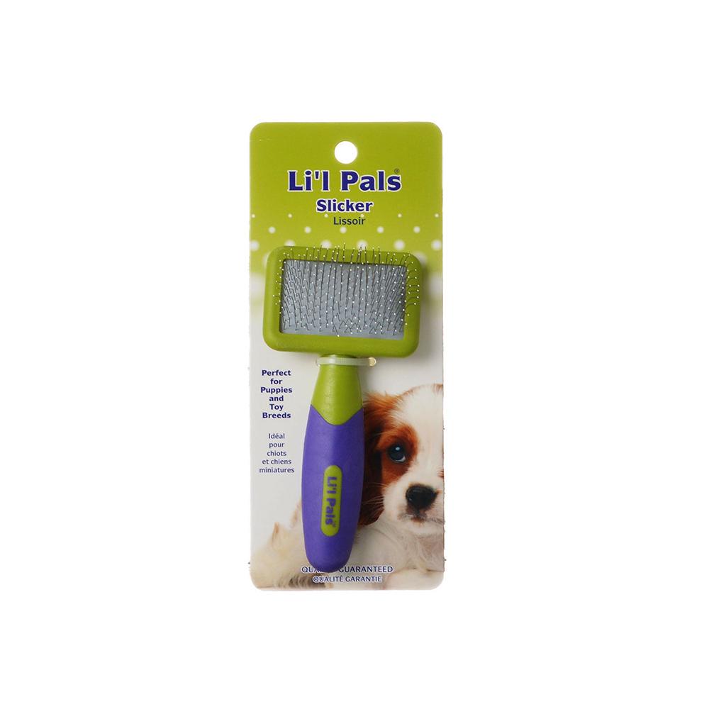 Keep your precious little girl looking fresh and clean with the Li’l Pals Coated Tips Dog Slicker Brush. Featuring a pad of flexible wire pins that contour to her body for efficient grooming, this brush quickly and easily detangles fur, removes loose hair and smooths the coat. Regular brushing also massages the skin to stimulate the production of natural oils and distributes them evenly for a shiny, healthy coat. At 4.9 inches in length, this little brush is scaled down to the perfect proportions for petite pups.