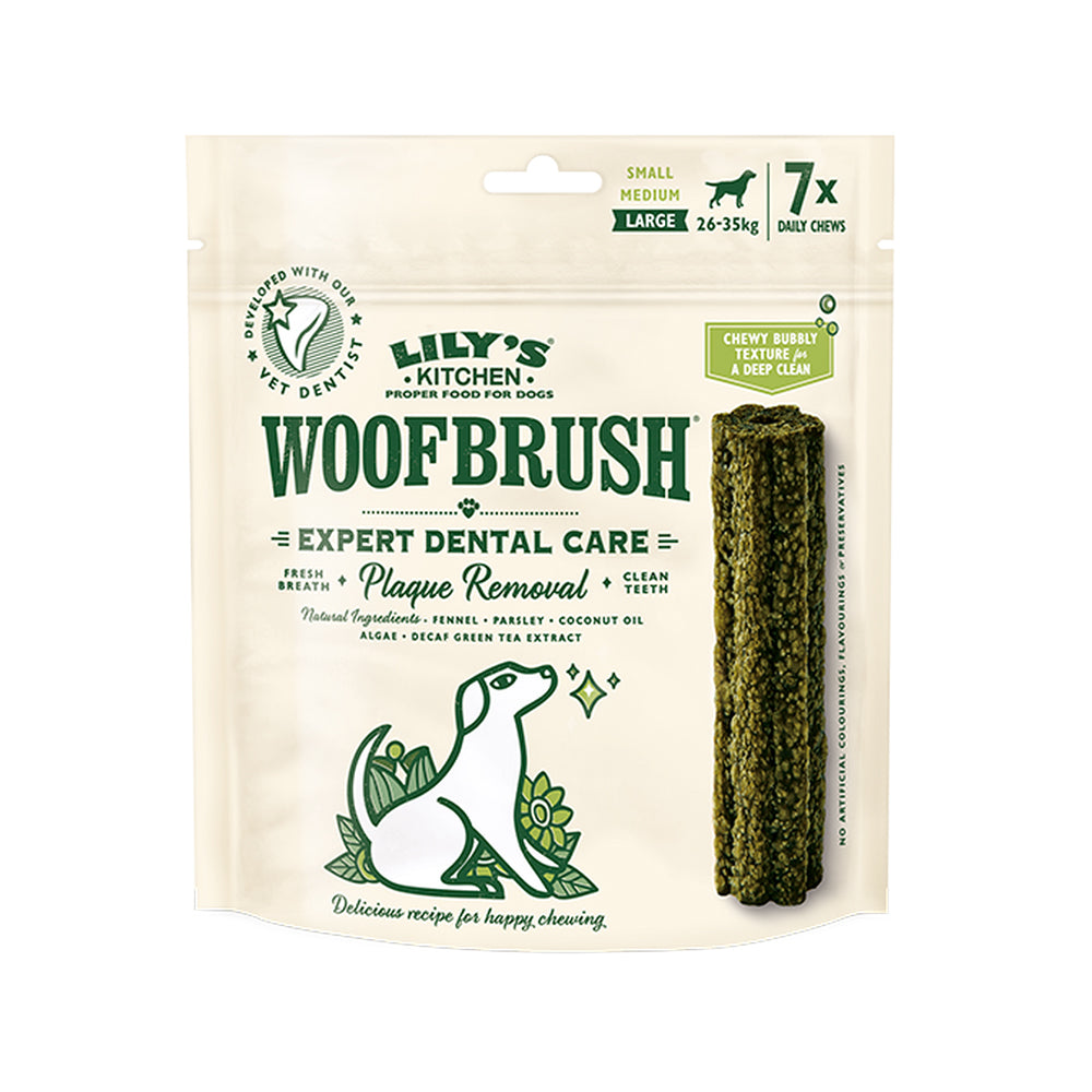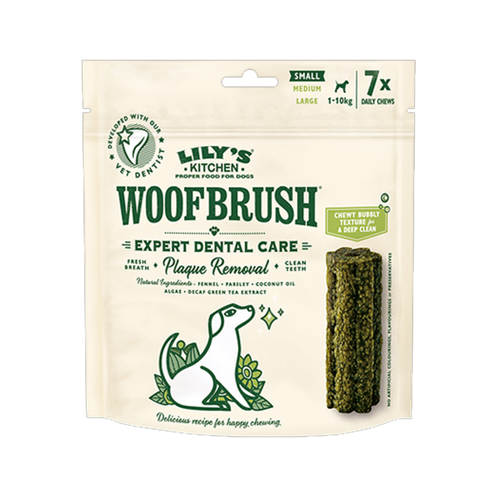 Woofbrush is the dental chew with a difference. Thanks to its chewy bubbly texture, the Woofbrush reaches the gumline to help fight plaque. Its delicious taste turns teeth cleaning into a joy!