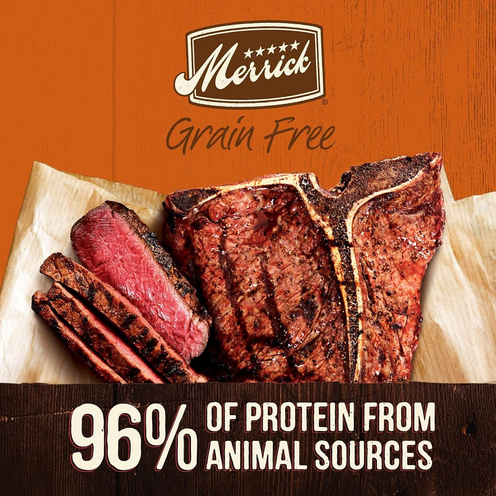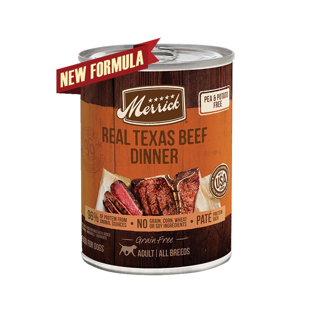 • Nourish your dog with the high-quality protein and healthy fats needed to thrive when you serve this Merrick Grain Free Wet Dog Food Real Texas Beef Dinner.