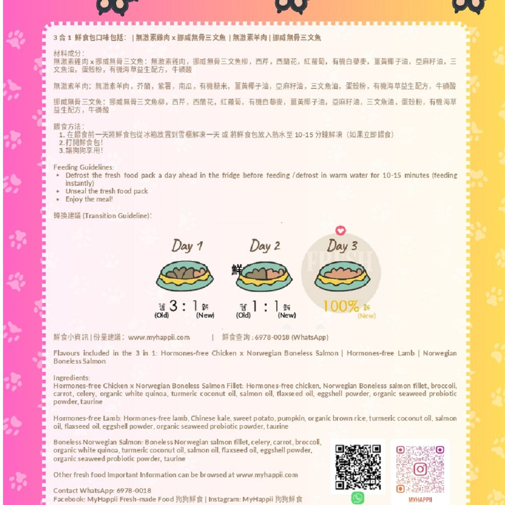 Flavours included in the 3 in 1 : Hormones-free Chicken x Boneless Norwegian Salmon + Hormone-Free Lamb + Norwegian Boneless Salmon