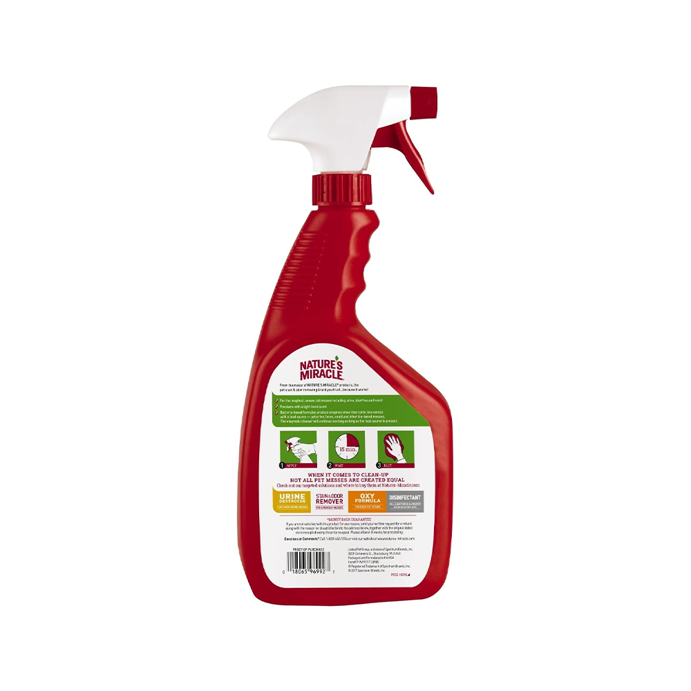 Nature’s Miracle Advanced Stain and Odor Eliminator works to discourage re-soiling by removing the odor of cat messes. The bacteria-based formula produces enzymes when it comes in contact with bio-based messes including severe urine, diarrhea, vomit and blood. The Stain and Odor Eliminator is safe to use on carpets, hard floors, furniture, fabrics and more, when used as directed, and leaves you with a light fresh scent.