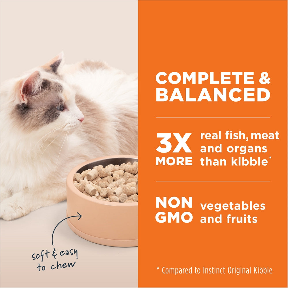 • 3x more real fish, meat & nutrient-rich organs than kibble* More animal-based protein in each bite for better nutrition and guaranteed meal time excitement *Compared to Instinct Original Kibble