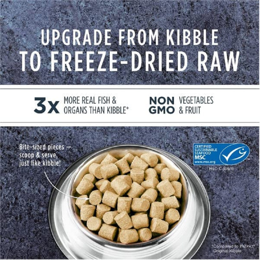 • 3x more real fish, meat & nutrient-rich organs than kibble* More animal-based protein in each bite for better nutrition and guaranteed meal time excitement *Compared to Instinct Original Kibble