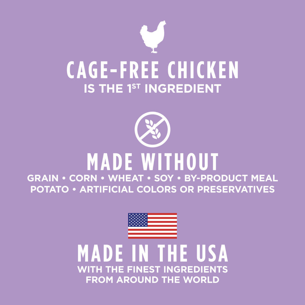 - • Cage-free chicken is the first ingredient – high animal protein to support the energy needed for growth and play
