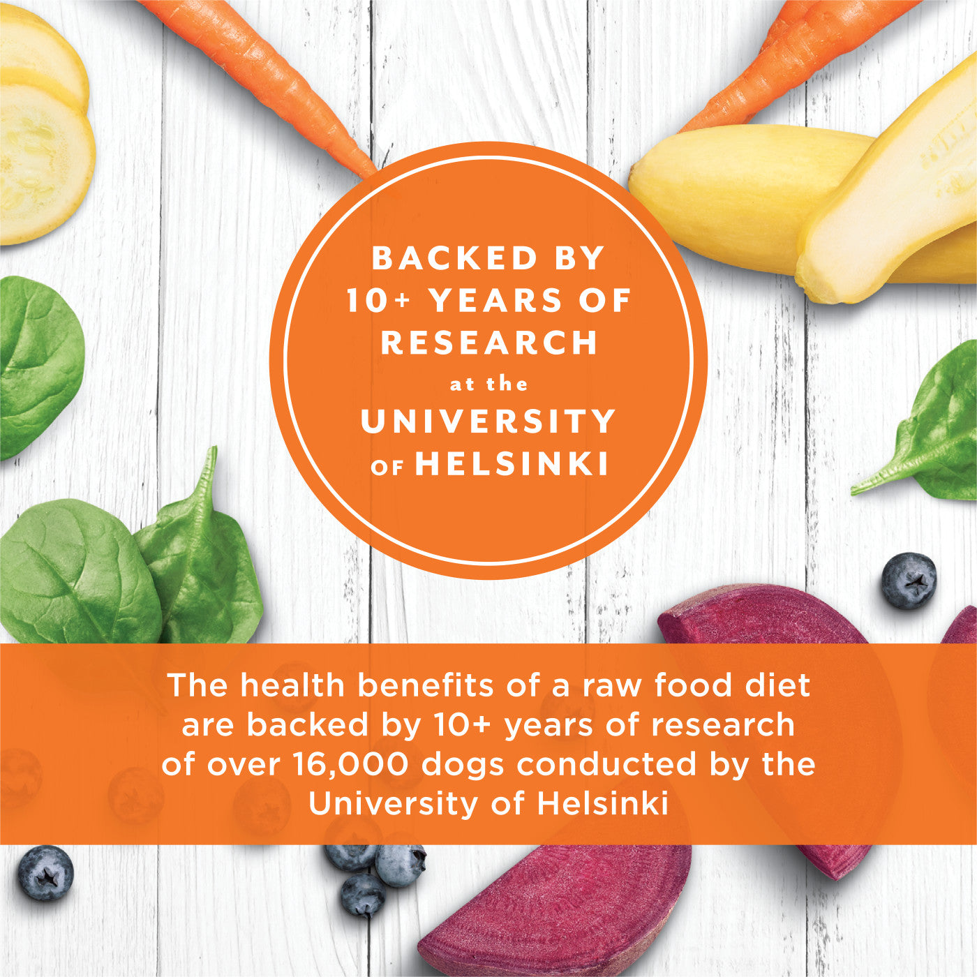 • 86% real chicken, organs and bone and 14% vegetables, fruits and other wholesome ingredients