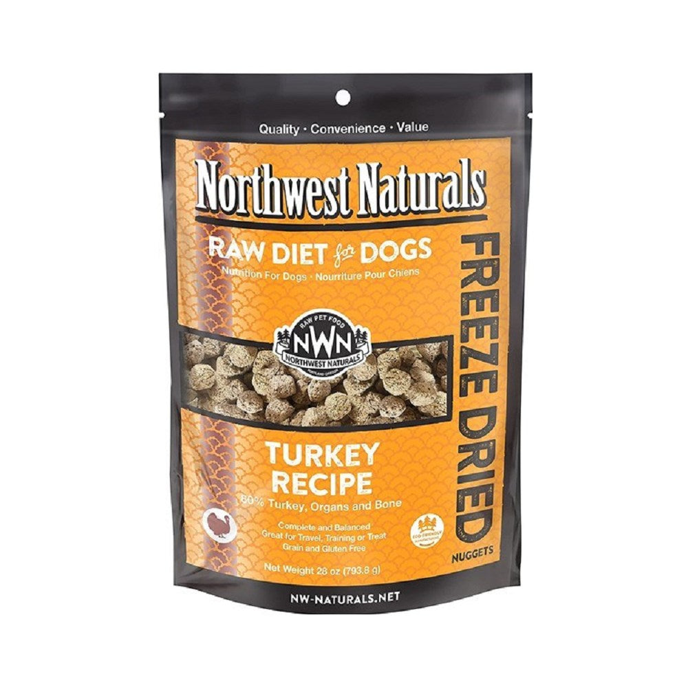 Northwest Naturals Turkey Recipe Freeze-Dried Dog Food Nuggets was developed with your pet’s health, happiness and well-being in mind. This complete and balanced diet follows raw feeding principles and is the same as Northwest Naturals Raw Frozen Diet, in convenient freeze-dried form. Northwest Naturals raw food provides essential, species appropriate benefits to your pet that cooked food simply cannot compete with!