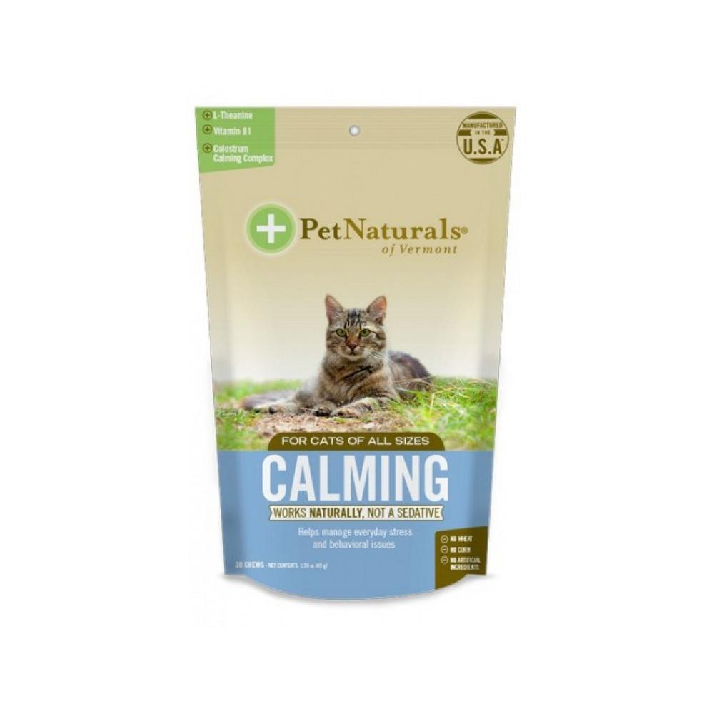 Calming for Cats chews are a calming supplement designed to support relaxationߞespecially when your cat is stressed out. When your cat can’t deal with your holiday guests or you want him to stay calm on that long trip to the vet, Calming chews are a convenient opportunity to help him relax. Three ingredients work together to support calm behavior without sedation or personality changes. No herbals used.