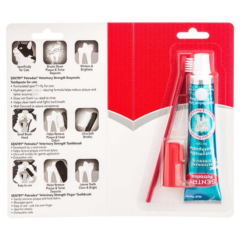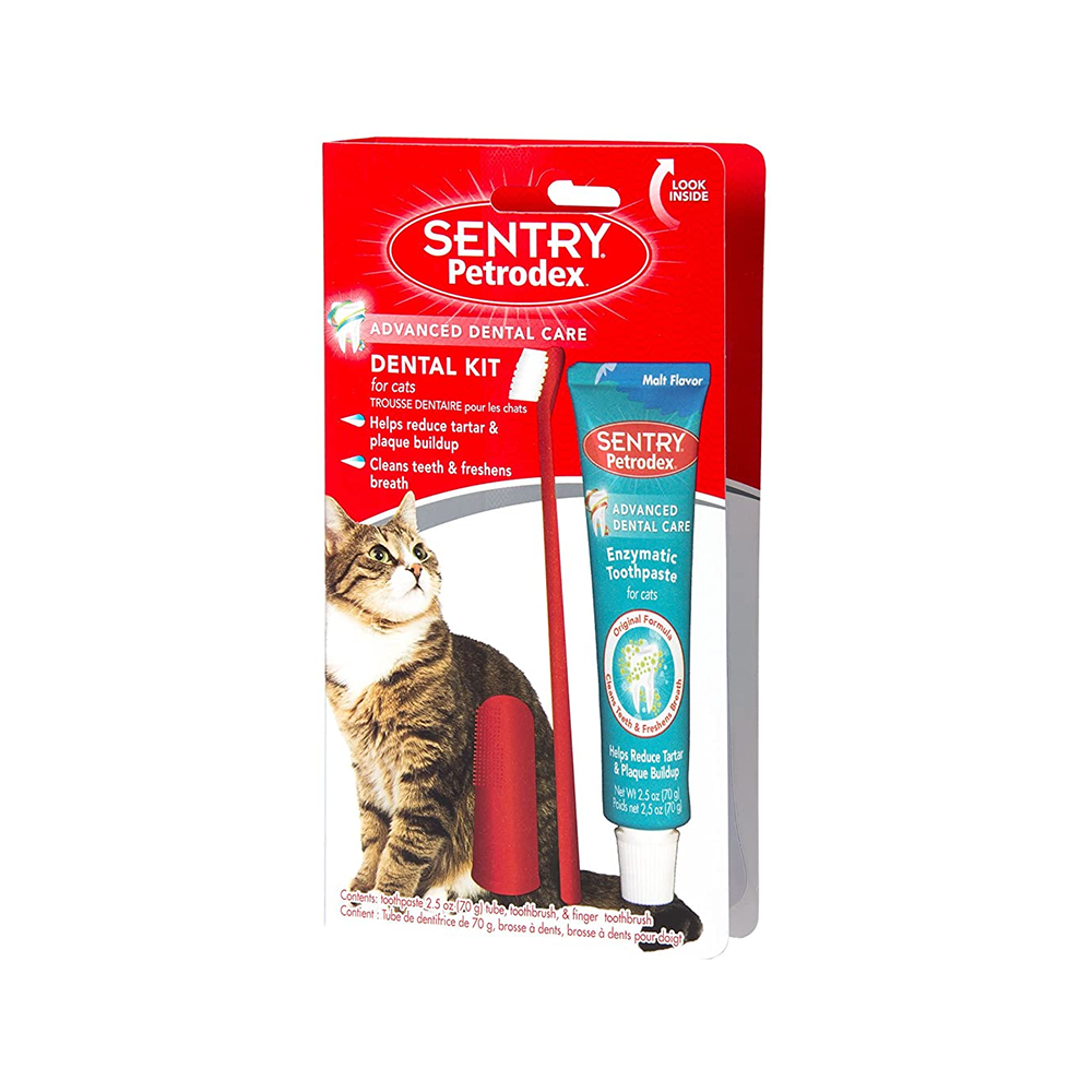 SENTRY Petrodex Dental Care Kit Cat with Malt Toothpaste is the perfect dental kit for your cat. These items used together help fight bad breath and also reduce tartar and plaque buildup. This kit contains toothpaste in a delicious malt flavor, toothbrush and finger toothbrush.