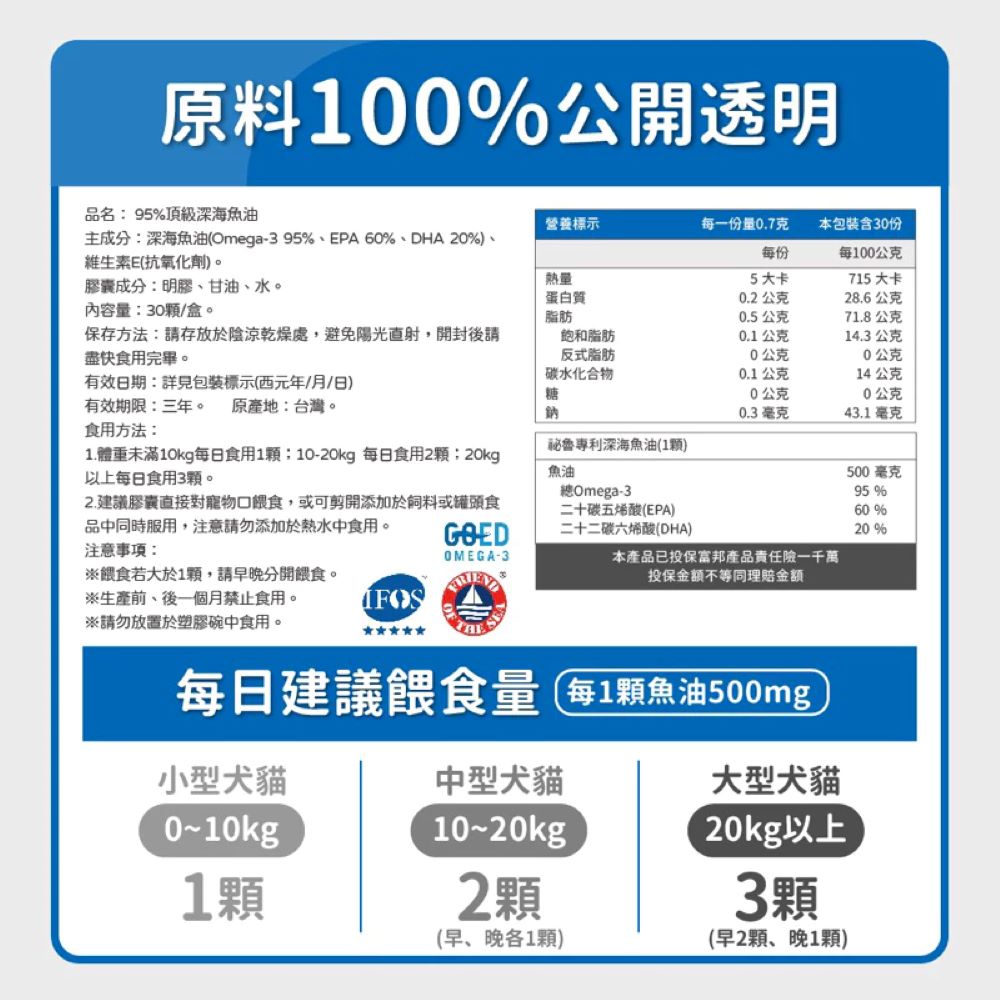 - Premium fish oil supplement with 95% omega-3 for overall pet health.