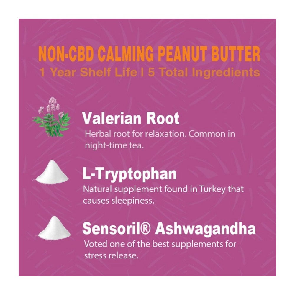 • Made with natural ingredients: Dry roasted peanuts, pumpkin, valerian root, L-tryptophan, and Sensoril ashwagandha.