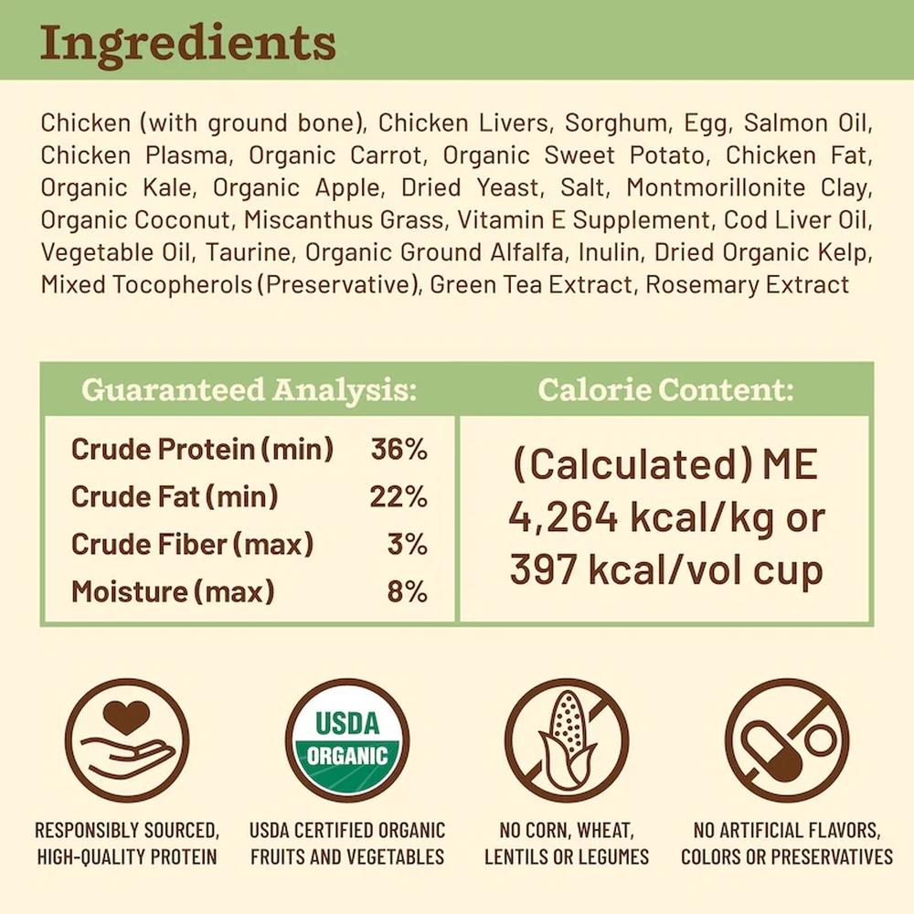– Cage-Free Chicken Recipe: Made with responsibly raised chicken, organs, and ground bone for optimal nutrition and protein.