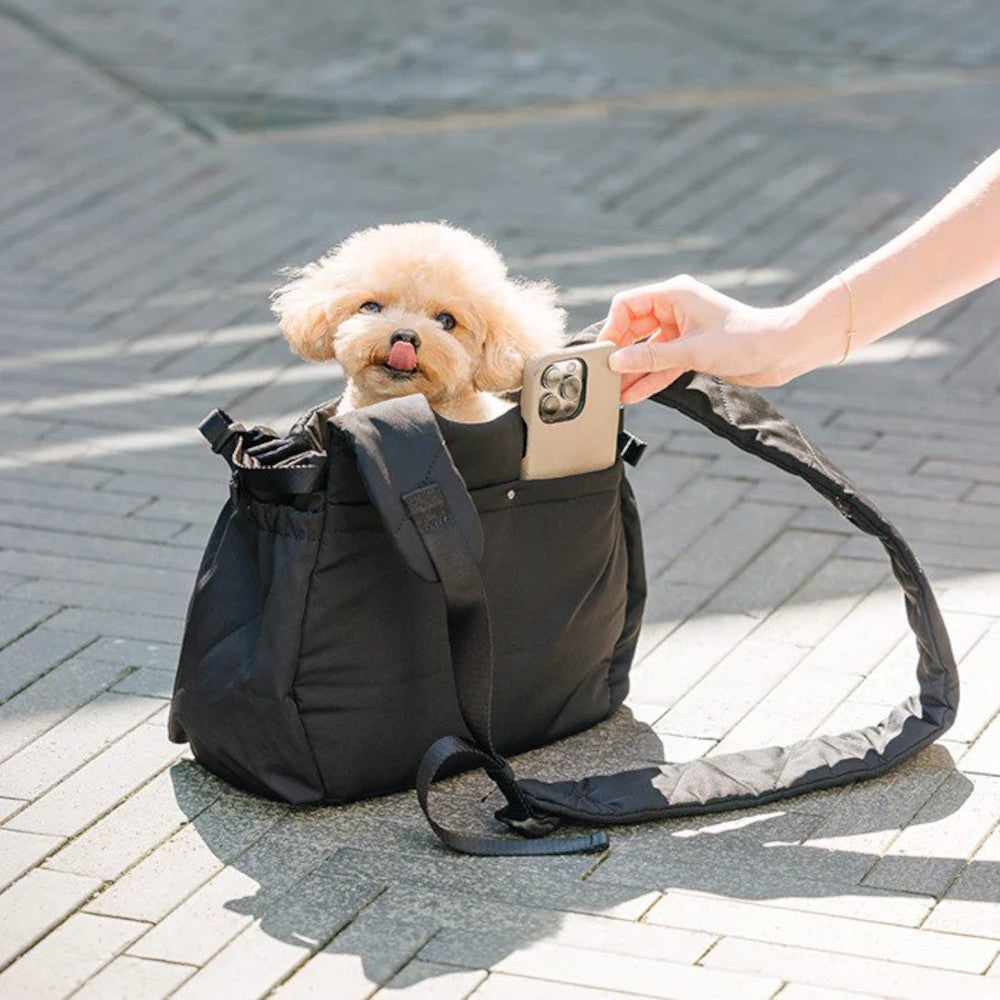[SAFE] Adjustable opening to keep pup from jumping out. Also has a safety latch to be hooked onto pet’s collar.