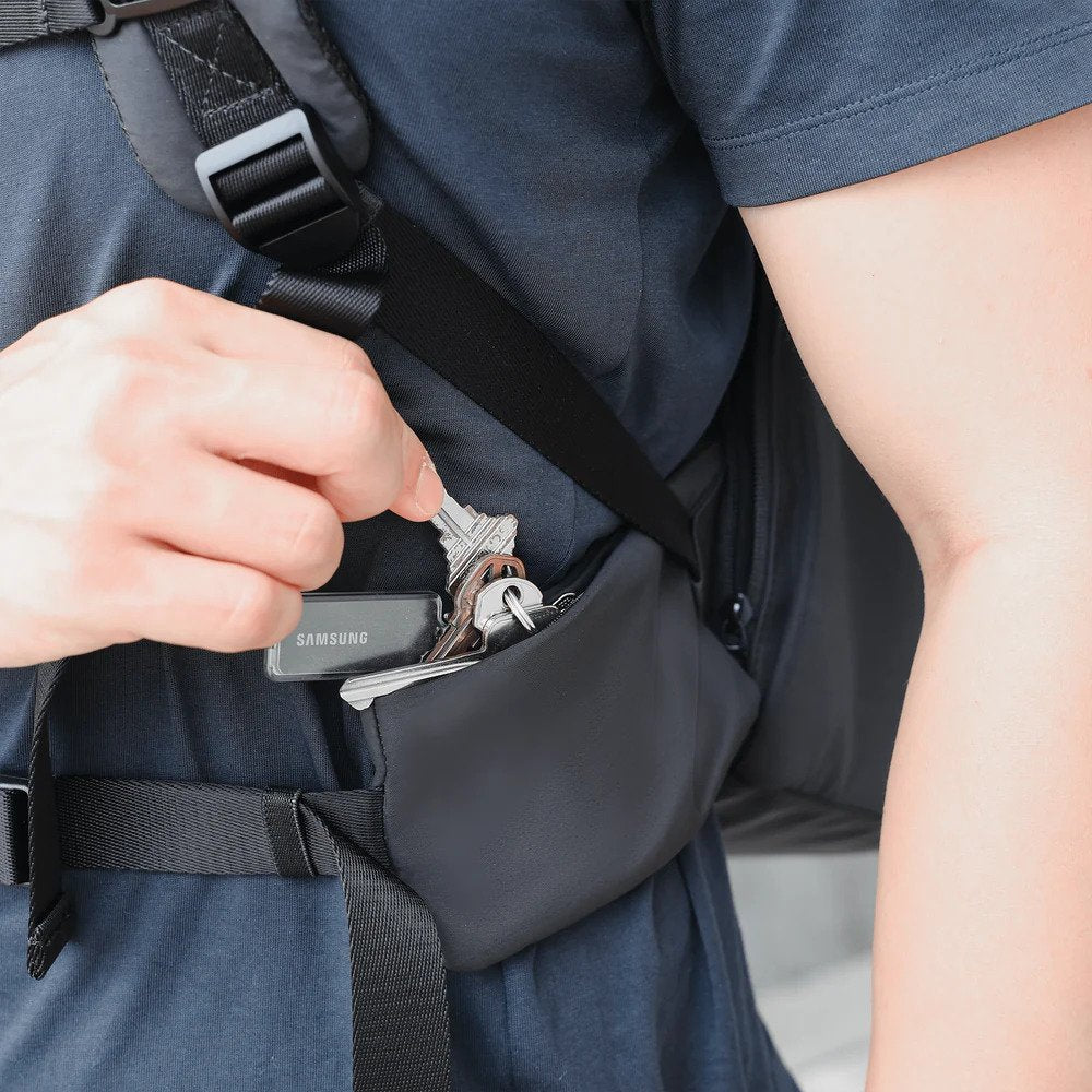 – Key / airpod pocket on waist belt for easy access