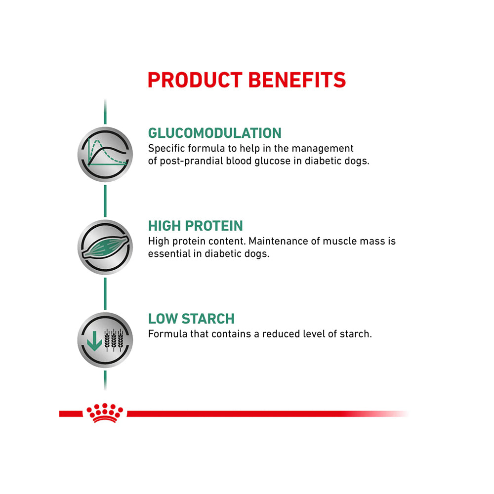 – Veterinary dry food for diabetic adult dogs.