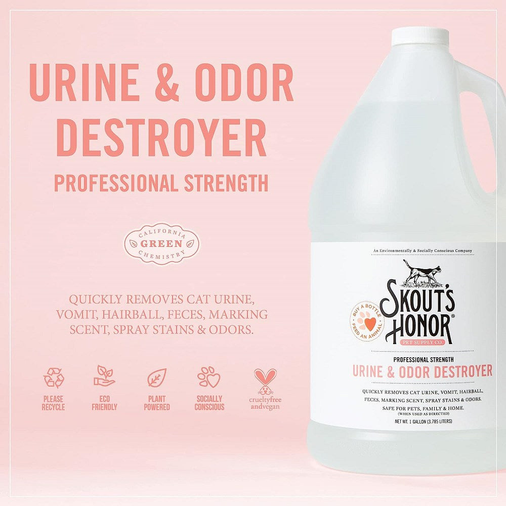 • Helps eliminate feline pheromones and quickly remove cat urine, vomit, hairball, feces, marking scent, spray stains and odors.