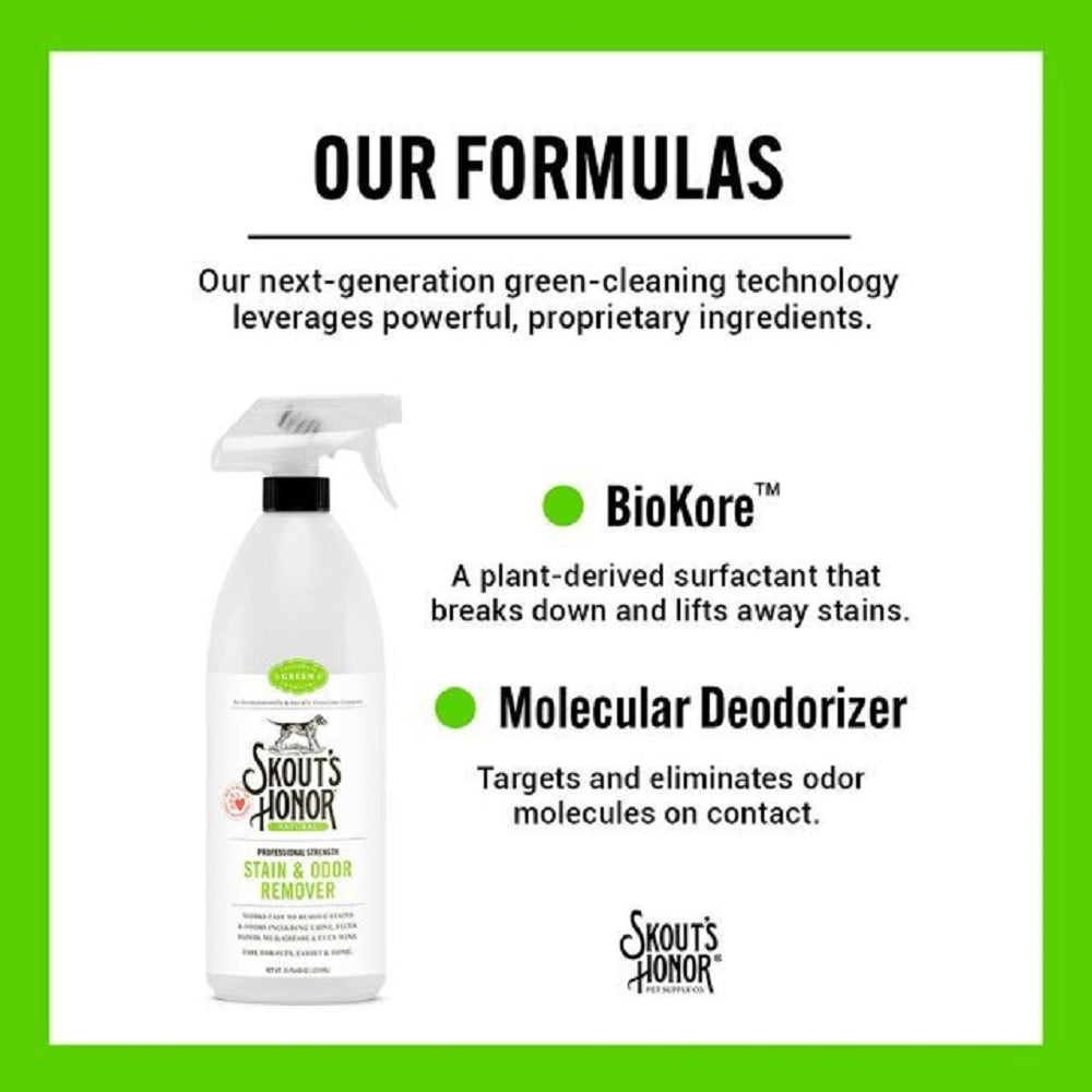 • Professional strength stain and odor remover uses BioKore technology to break down stains and destroy odor molecules.