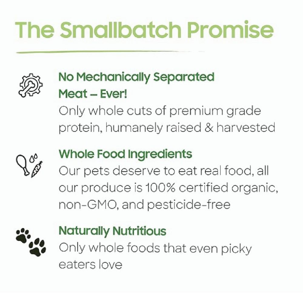 88% humanely raised and harvested chicken, 10% organic produce, 2% natural supplements