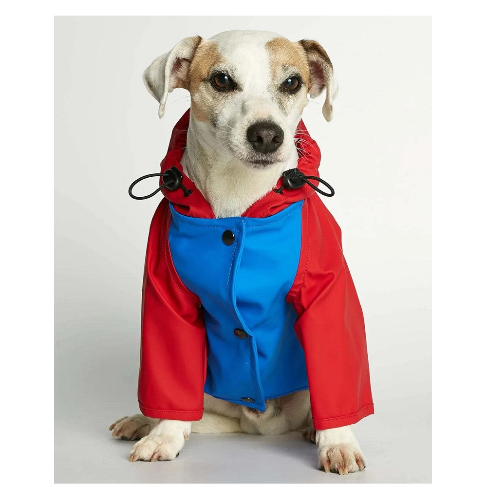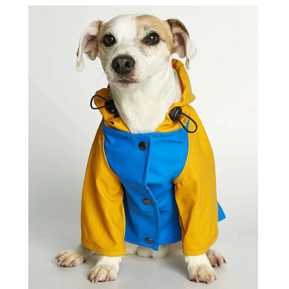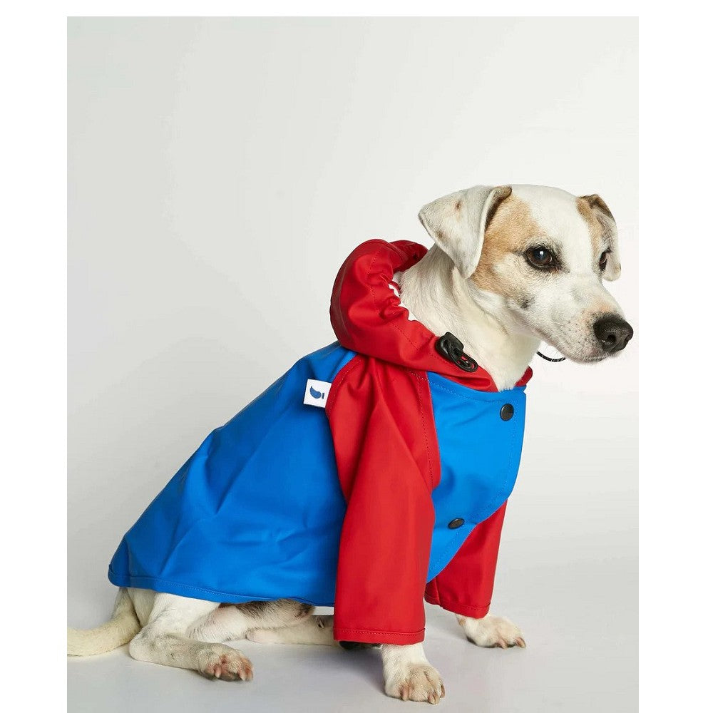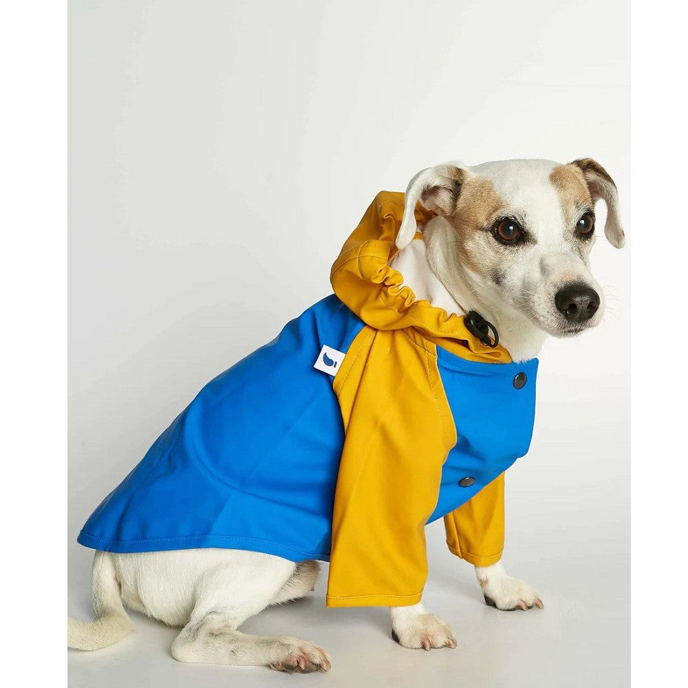 Dog raincoat made from recycled polyestern obtained through a recovery process of plastics from the oceans, fishing nets and textile fiber waste. This soft but sturdy fabric protects your dog’s front legs and trunk from the rain and dries very quickly.
