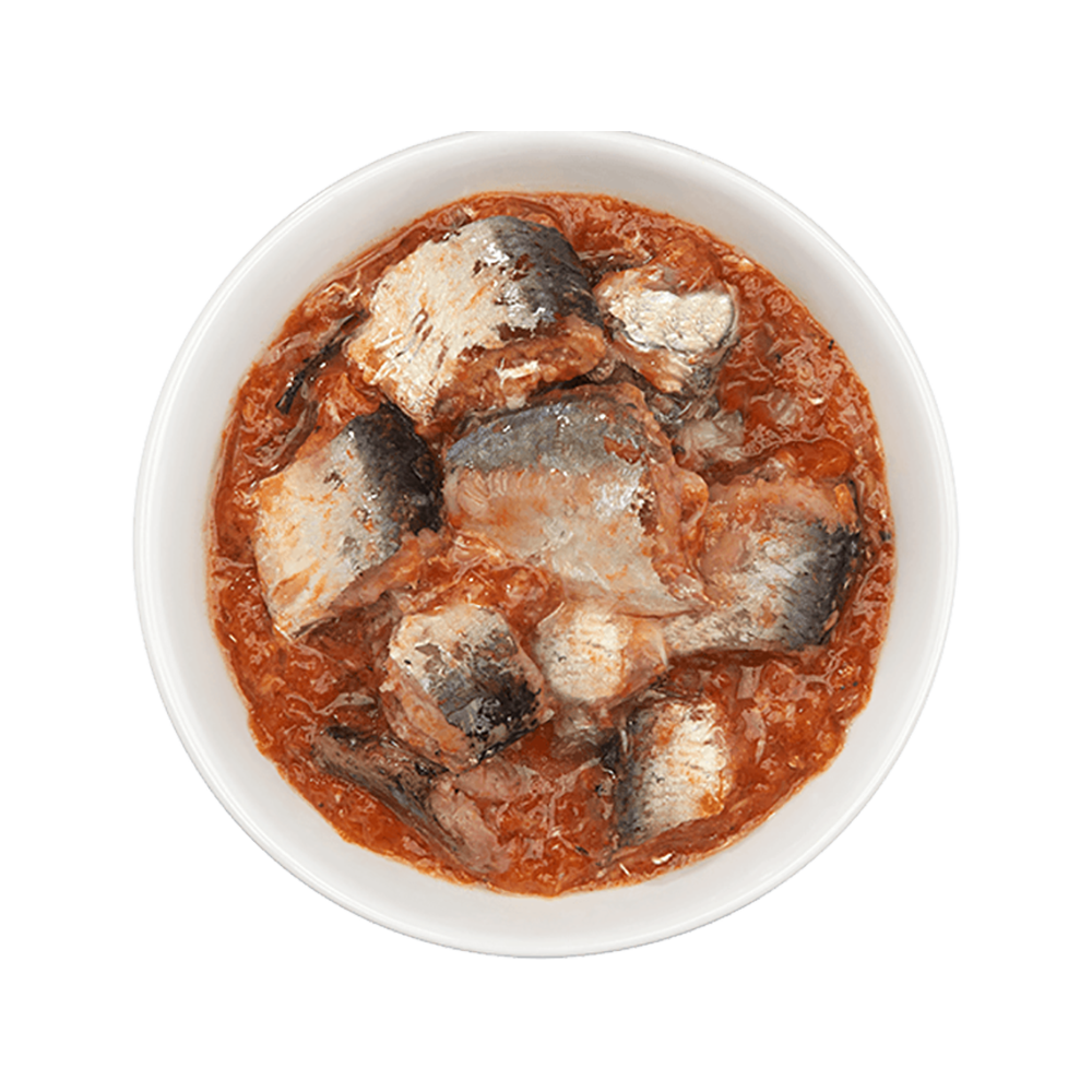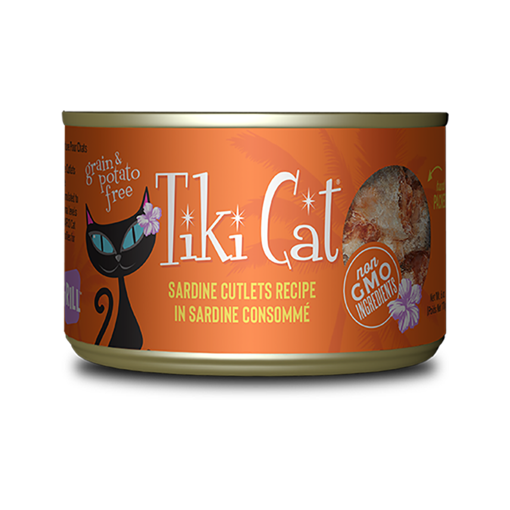 Sardine, sardine broth, sunflower seed oil, locust bean gum, guar gum, xanthan gum, choline chloride, paprika, taurine, zinc sulfate, vitamin E supplement, niacin (vitamin B3), thiamine mononitrate (vitamin B1), calcium pantothenate, vitamin A supplement, iron sulfate, riboflavin supplement (vitamin B2), pyridoxine hydrochloride (vitamin B6), copper sulfate, folic acid, manganese sulfate, potassium iodide, vitamin D3 supplement, menadione sodium bisulfite complex (source of vitamin K activity), biotin, vitamin B12 supplement.