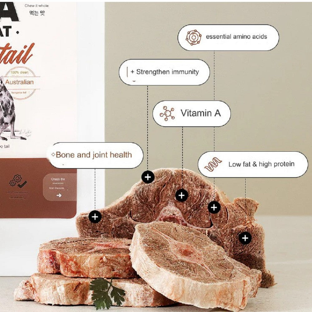 • Dental Health Benefits: Chewing on the tough texture of kangaroo tails helps to clean teeth and gums, reducing plaque and preventing tartar buildup.