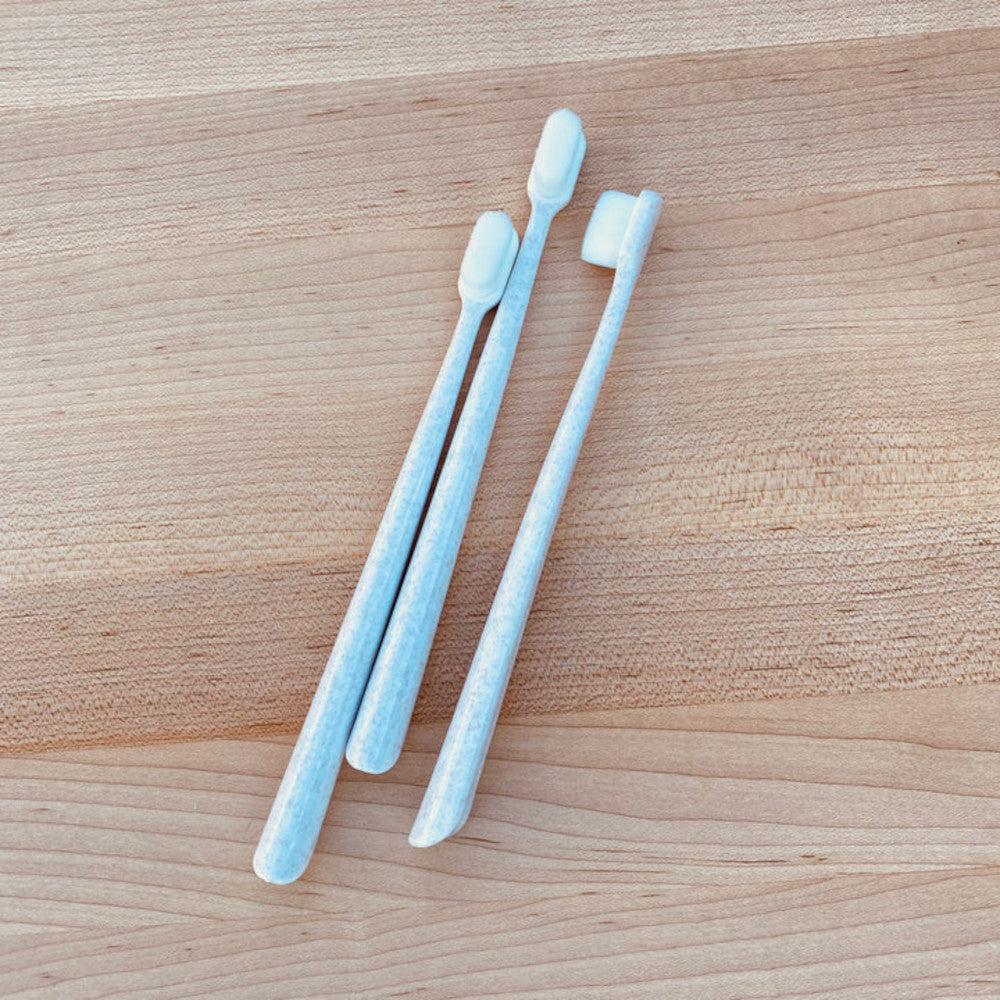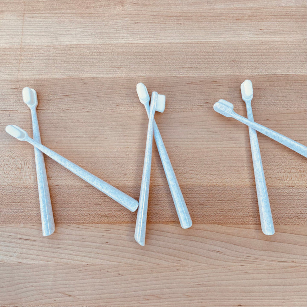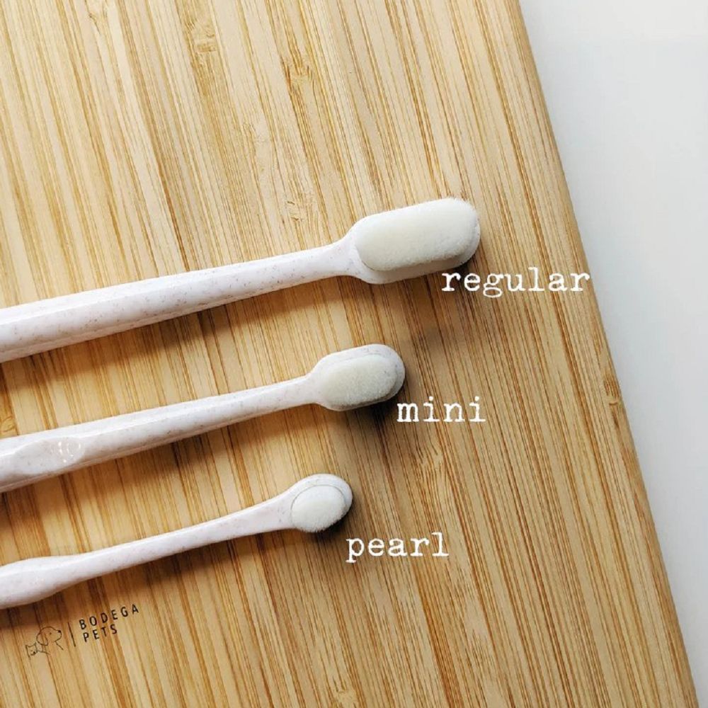 The ultimate softness for your pup! This toothbrush is made from a 60% wheat straw upcycled bioplastic. It has over 10,000+ silky bristles to provide the deepest cleaning action while yet gentle on your dogs sensitive gums.