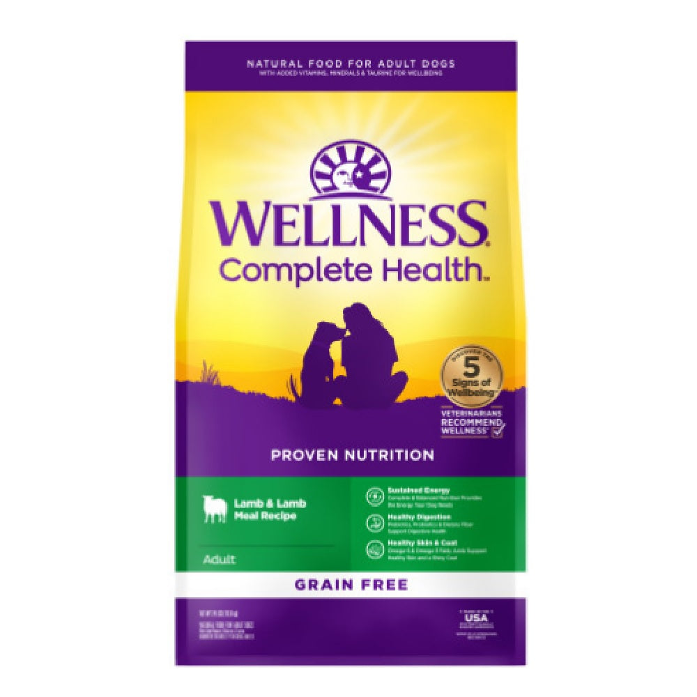 Wellness Complete Health Grain Free Lamb supports strong muscles, digestion, and a shiny coat with clean ingredients and complete daily nutrition.