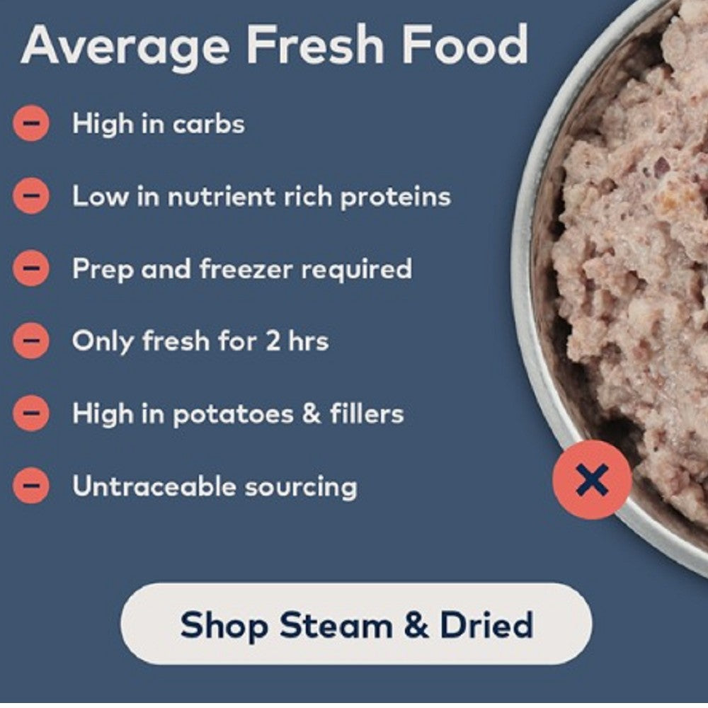 Steam & Dried – Cage-Free Chicken With Orchard Fruits Dog Food